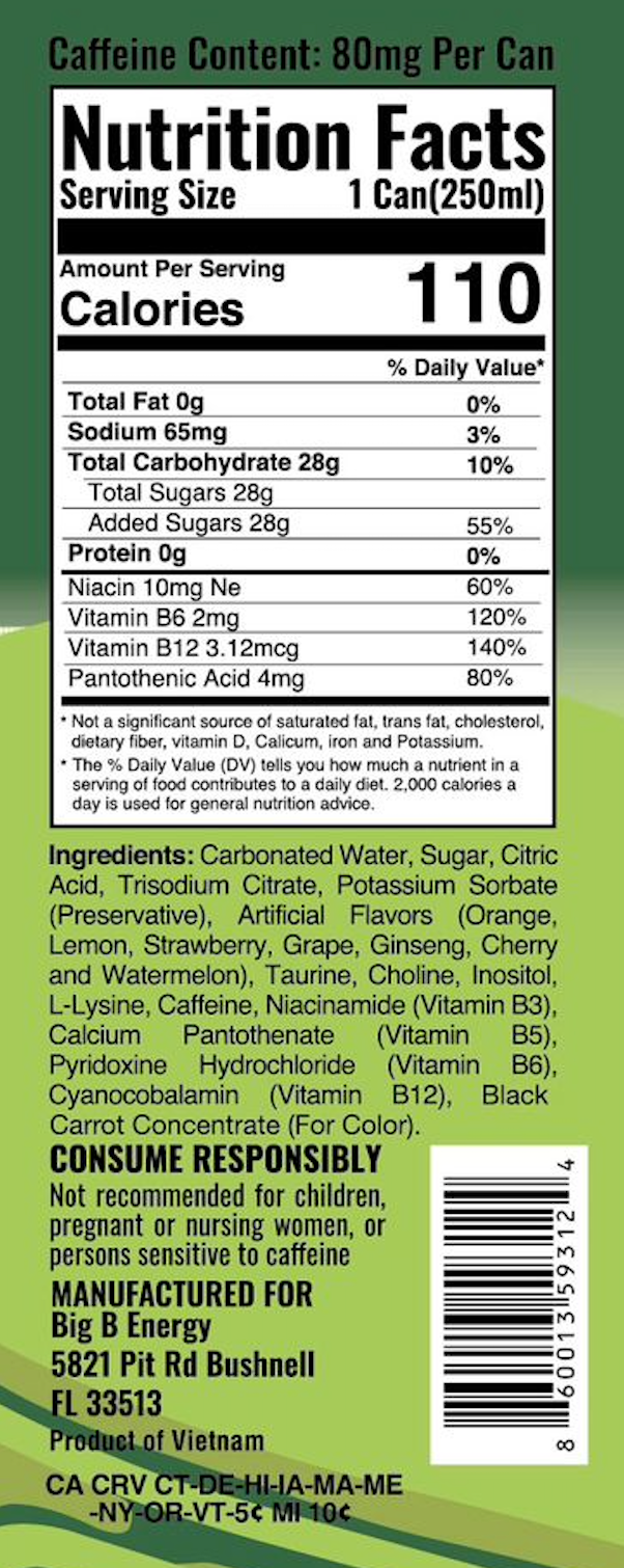 B-Vitamin Powerhouse: Big B Energy includes a well-rounded B-vitamin complex—essential for converting food into energy, supporting brain function, focus and clarity, reducing fatigue, metabolism support, and immune system strength :